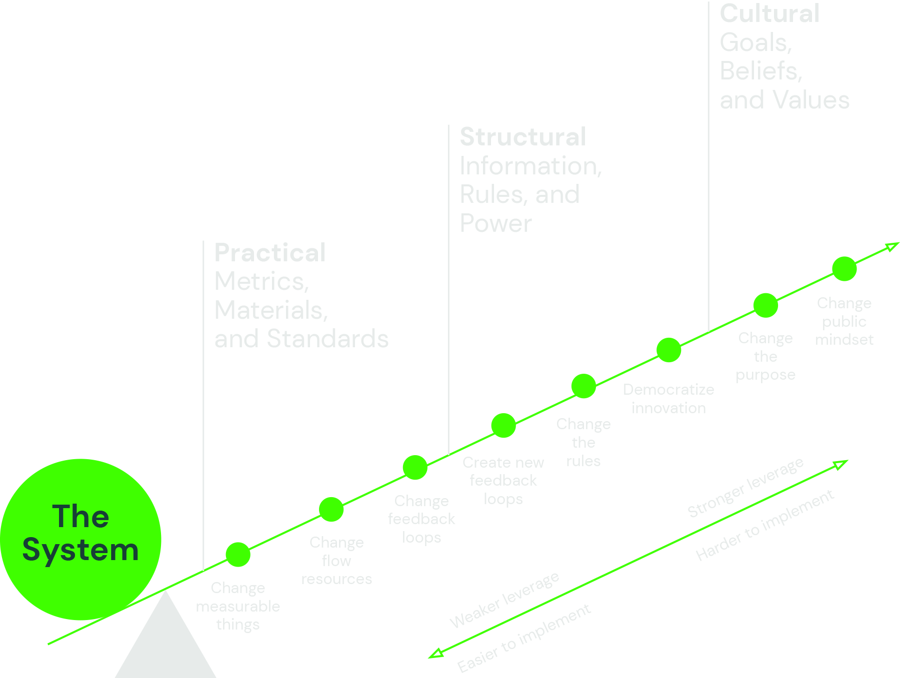 We are fans of the academic Donella Meadows and her famous analysis of different leverage points that can create change in society [Thinking in Systems: A Primer].